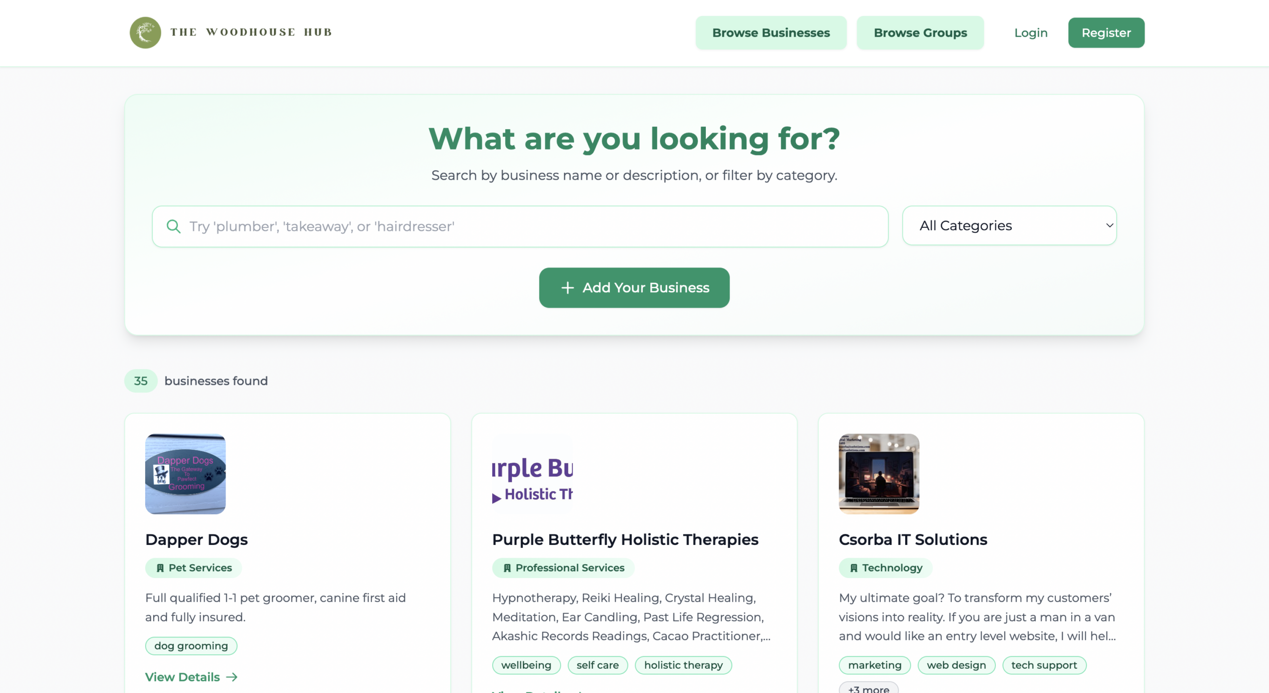 The Woodhouse Hub is a community-focused digital platform created to bring local businesses, groups, and residents together in one place.